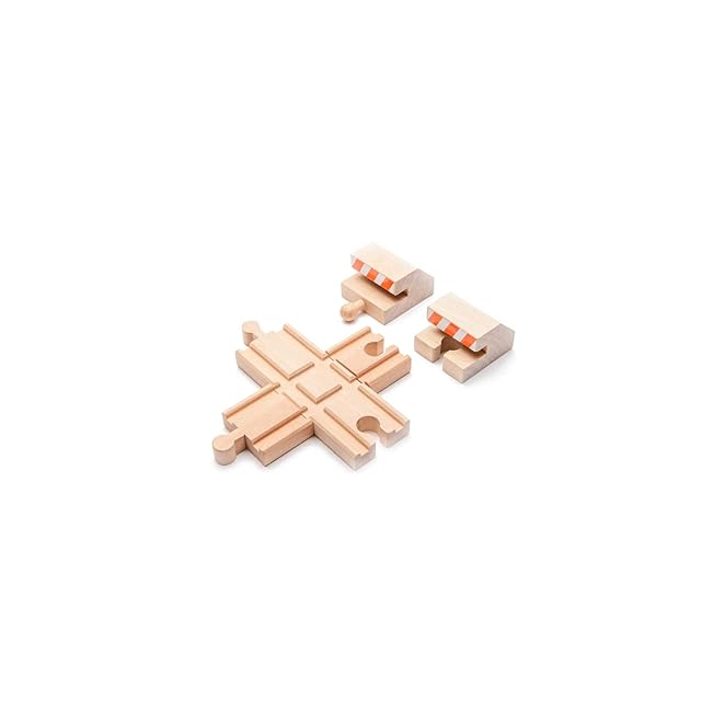 木製レールならではの「ゴトゴト」という自然な音。 <br /> 木製レールの世界に十字路を作ってくれるオススメのパーツです。十字路だけでなく、レールを広げていくと余ってしまったレールの端を止めてくれるストップパーツもついています。 <br /> <br /> BRIO社、きかんしゃトーマス木製レールなどと互換性があります。