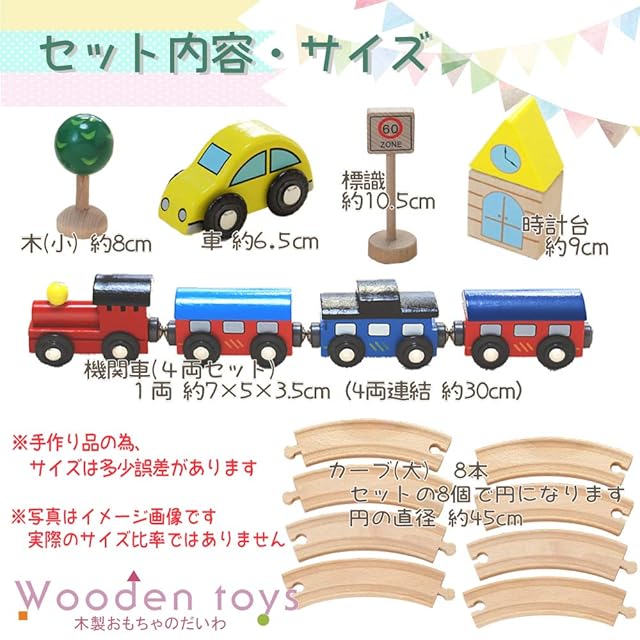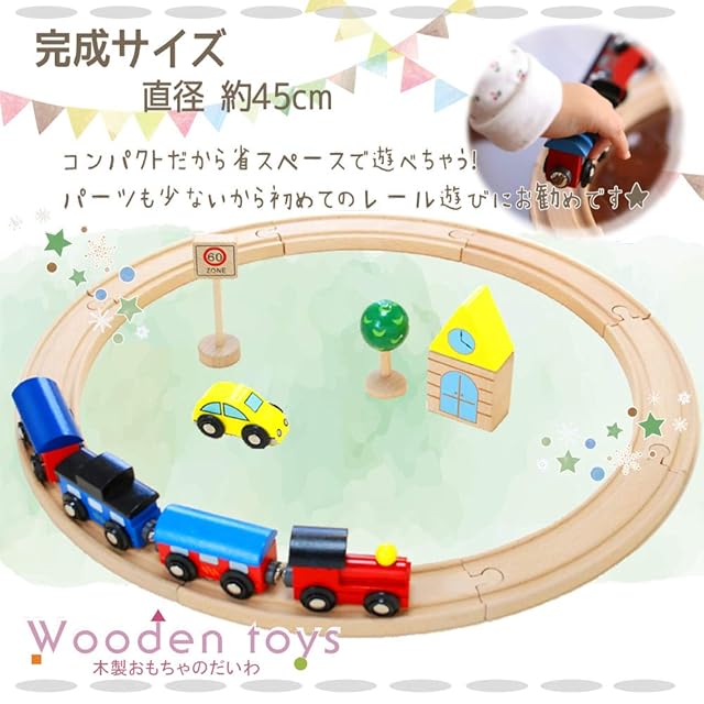 商品名:木製おもちゃのだいわ 汽車レールセットベーシック 男の子 電車 ミニカー 乗り物 レールセット レール 車両 車両パーツ 線路 セット 木の線路 木の車 セット ギフト用 プレゼント用 クリスマス 誕生日