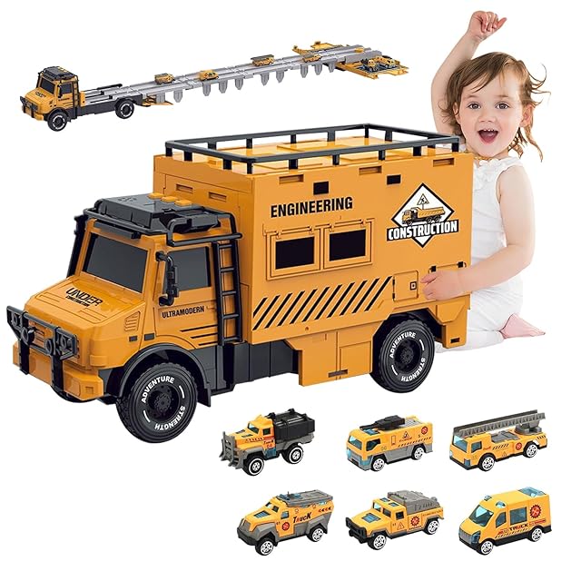 7JI 慣性変形トラック 慣性 6台車セット 車 折りたたみ可能 変形機能 トラック 車 おもちゃ 変形レール カー 子供向け 子供 誕生日 クリスマス 新年 プレゼント ギフト 黄色