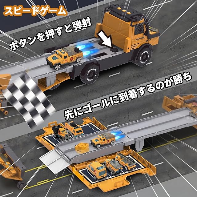 【安全無毒な素材と耐久性】慣性変形トラックは安全無毒で優れたABS素材で作られ、子供の健康に悪い影響を与えません、6台の車も、耐久性が大幅上回ったので、使用時間は最大何年も伸びます、慣性トラックの表面は滑らかで、子供が傷つくことを心配なく遊ぶことが可能です。