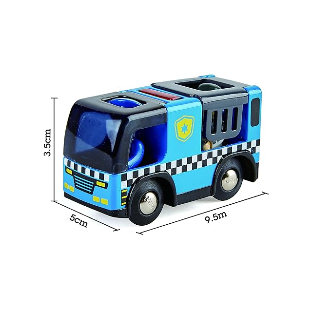 ハぺのレールシリーズといっしょに遊べる護送車セットです。ハッチを開けて人形を乗せることができます。<br>ボタンを押すとサイレンが鳴る仕掛け付き!後ろの部分は牢屋になっており、囚人を乗せることができます。