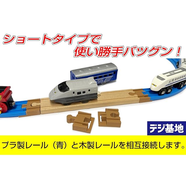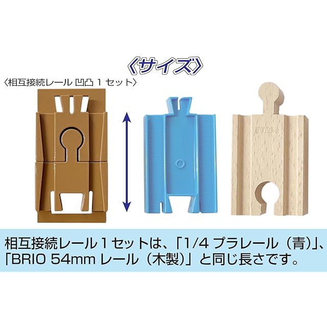 ショートタイプが新登場!画期的!変換レールシリーズ(プラレール対応・BRIO対応 木製レール対応) 凹凸のセット。使い勝手バツグン!プラ製レール(青)と木製レールを相互接続します。2種のレールをあっという間に相互接続し、きれいなレイアウトが可能になります。