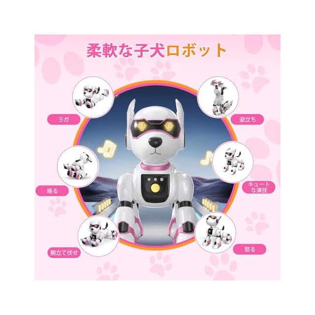 リモコンロボット犬:魅力的な特技を持つこのリモコン操作の犬型ロボットは、非常に柔軟で、4つの車輪を備え、内蔵されたLEDライトの目が子どもたちを引きつけます。この可愛い犬 ロボット、子どもたちと一緒に歌ったり、ダンスしたり、滑ったり、物語を語ったり、逆立ちや座ったり、ヨガ、腕立て伏せ、かわいく振る舞う、怒るといった多彩なアクションで子どもたちを楽しませます。 ロボット犬 犬 ロボット犬型ロボットロボットおもちゃ 男の子 ペットロボット犬 電子 ペットロボット犬おもちゃ 人気のロボット 犬ランキング ロボット玩具 誕生日プレゼント子供 クリスマスプレゼントペットロボット犬型ロボットプログラミング 子供おもちゃ動物のロボット玩具男の子女の子 動物型ロボットプログラミング ロボットロボット おもちゃロボット子供 子供 おもちゃ 女の子 玩具 犬 動く犬 おもちゃ 動くおもちや男の子 犬型ロボット プログラミング 電子ペット犬ロボットロボットペット犬