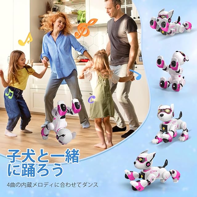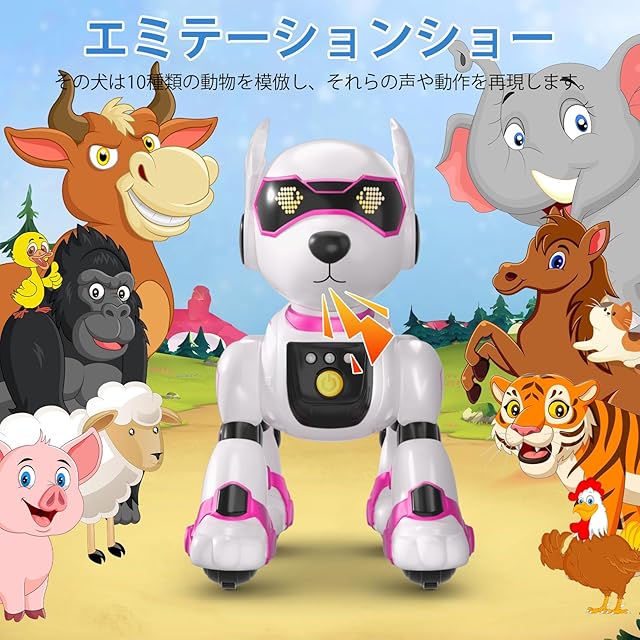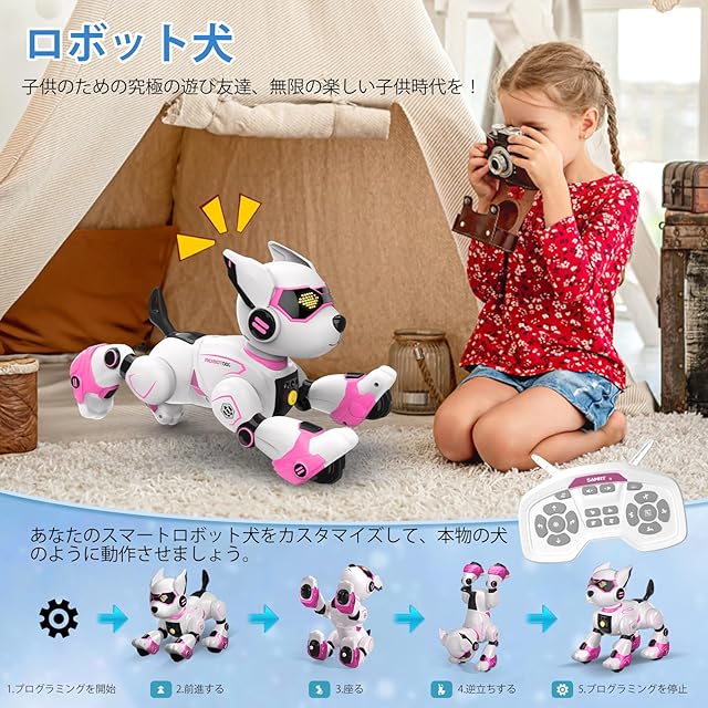 商品名:ロボット犬 おもちゃ 電子ペットロボット 手振り制御 音声制御 (英語のみ) タッチコントロール 犬 ロボット 子供おもちゃ人気 動物の声真似 プログラム可能 音楽演奏 動く犬 USB充電 音量調整可能 男の子 女の子 高齢者 小学生 誕生日 クリスマス プレゼント (ピンク)