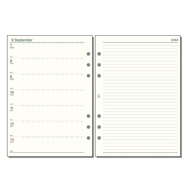 【レイアウト】片面1週間:時間目盛付で時間ごとのスケジュール管理が可能(142ページ 71枚)
