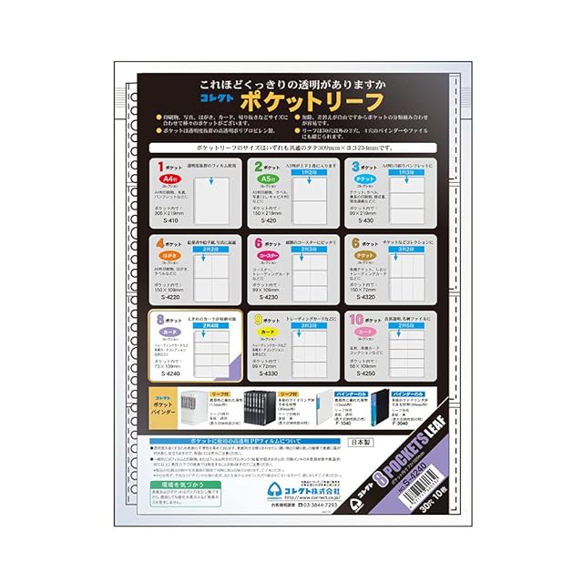 商品名:コレクト リフィル 透明 ポケットリーフ A4 8ポケット 30穴2列4段 10枚 S-4240