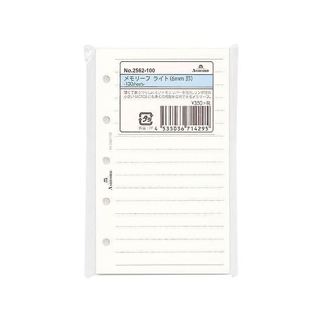 Ashford(アシュフォード) ミニ5穴サイズ メモリーフ ライト 6mm 罫線 100枚 システム手帳リフィル 2562-100