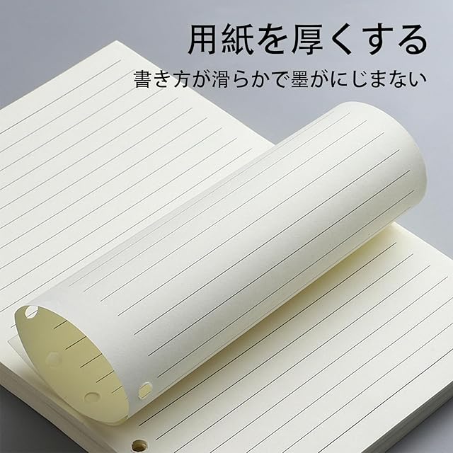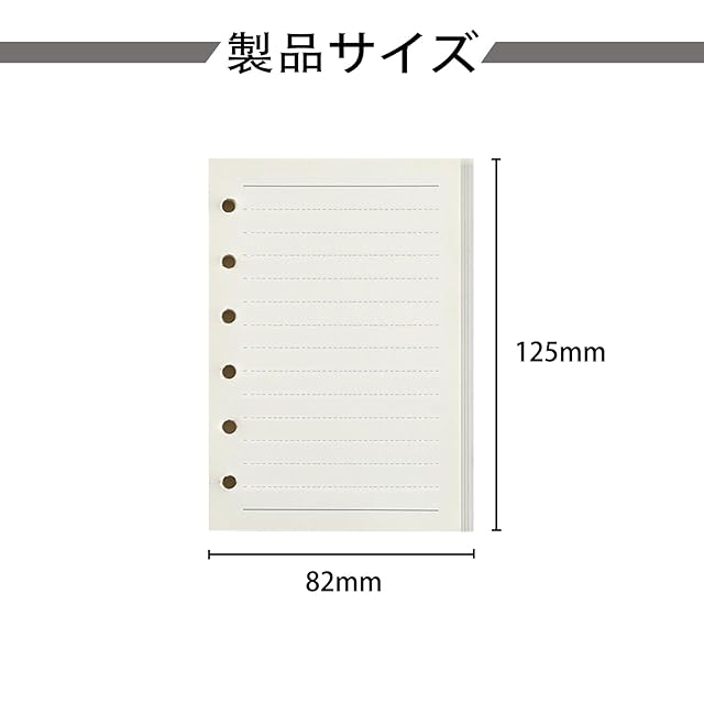 【包装内容】:A 7*4冊枚数:4冊*45枚計180枚、大容量の180枚で、使用頻度の高いミニ6穴マニュアルに最適です。メモを取るのに最適です。<br>【サイズ】:A 7(12.7×8.3 cm)6穴、横線14行6穴、穴の直径:5 mm、穴間隔:14 mm。<br>【上質紙】:白い紙は光を反射しやすいので、目に優しい淡いクリーム色を採用しており、紙面を長時間見続けても目が疲れにくい。書き心地が高く、適度な滑り具合が書き心地抜群。<br>【書き心地抜群】:書き心地が最も高いコピー用紙よりも厚く、ペン先が引っかかりにくく、書き心地が滑らかで、裏面が落ちにくいという特性を加え、再整理に最適な用紙です。<br>【コンパクト&書きやすさ】:ポケットにも入るサイズで携帯性に優れています。罫線は目立たない灰色の破線で、線に沿って書くことで自然でわかりやすいノートを作ることができます。文章を書いたり、板書を写したりするのに最適な学習用ノートや日記など。