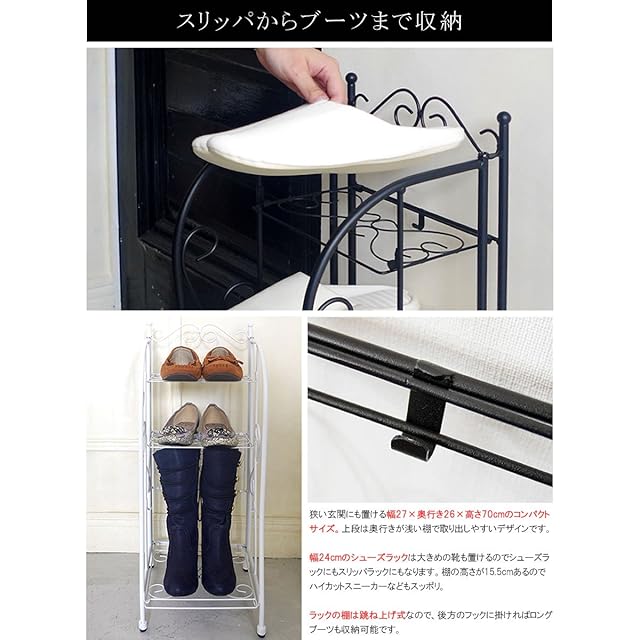 宮武製作所 玄関ラック DELSOL 幅27×奥行き26×高さ70cm ホワイト アジャスター付き DS-SR270S WH