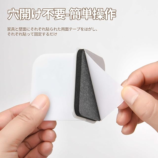 【取り付け簡単】穴あけ・取り付け工具などは不要、壁と家具に貼るだけで設置できます。壁を傷つけない、剥がせる粘着シートを採用しています。