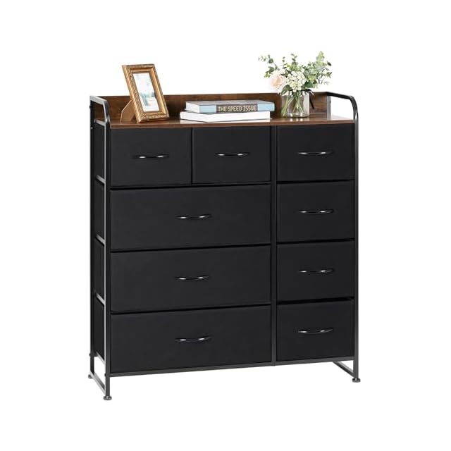 LYNCOHOME チェスト タンス ヴィンテージ風 北欧風 布製 大容量 引き出し リビング収納 オシャレ 衣類収納 転倒防止 低ホルム 4段9杯【幅87.5×奥行29×高さ99.5cm】