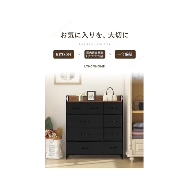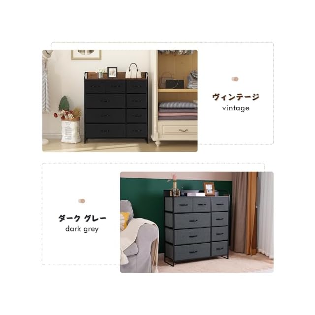 商品名:LYNCOHOME チェスト タンス ヴィンテージ風 北欧風 布製 大容量 引き出し リビング収納 オシャレ 衣類収納 転倒防止 低ホルム 4段9杯【幅87.5×奥行29×高さ99.5cm】