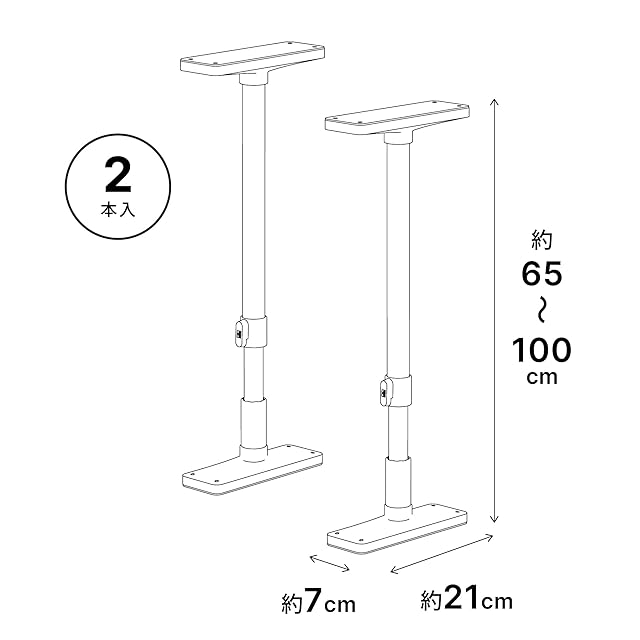 【サイズ】幅7×高65~100×奥行21cm【取付高さ】65~100cm 【入数】2本