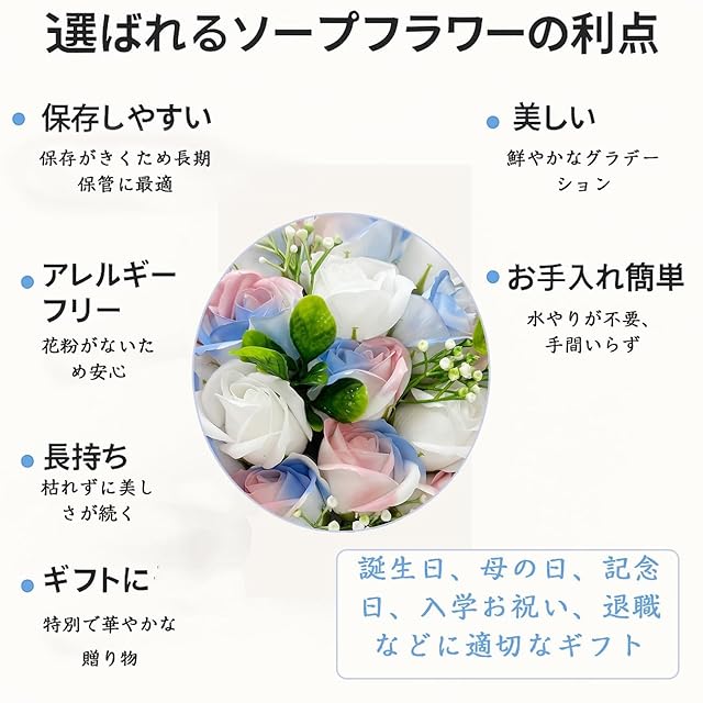 商品名:HWSHOW ソープフラワー 花束 造花 グラデーションカラー 誕生日 結婚記念日 プレゼント ギフト インテリア バラ 枯れない お花 手提げ付き メッセージカード付き 女性 母の日 敬老の日 還暦 バレンタインデー クリスマス 新年 彼女 送別会 退職感謝 お礼 昇進 転居 お見舞い グラデーションカラー