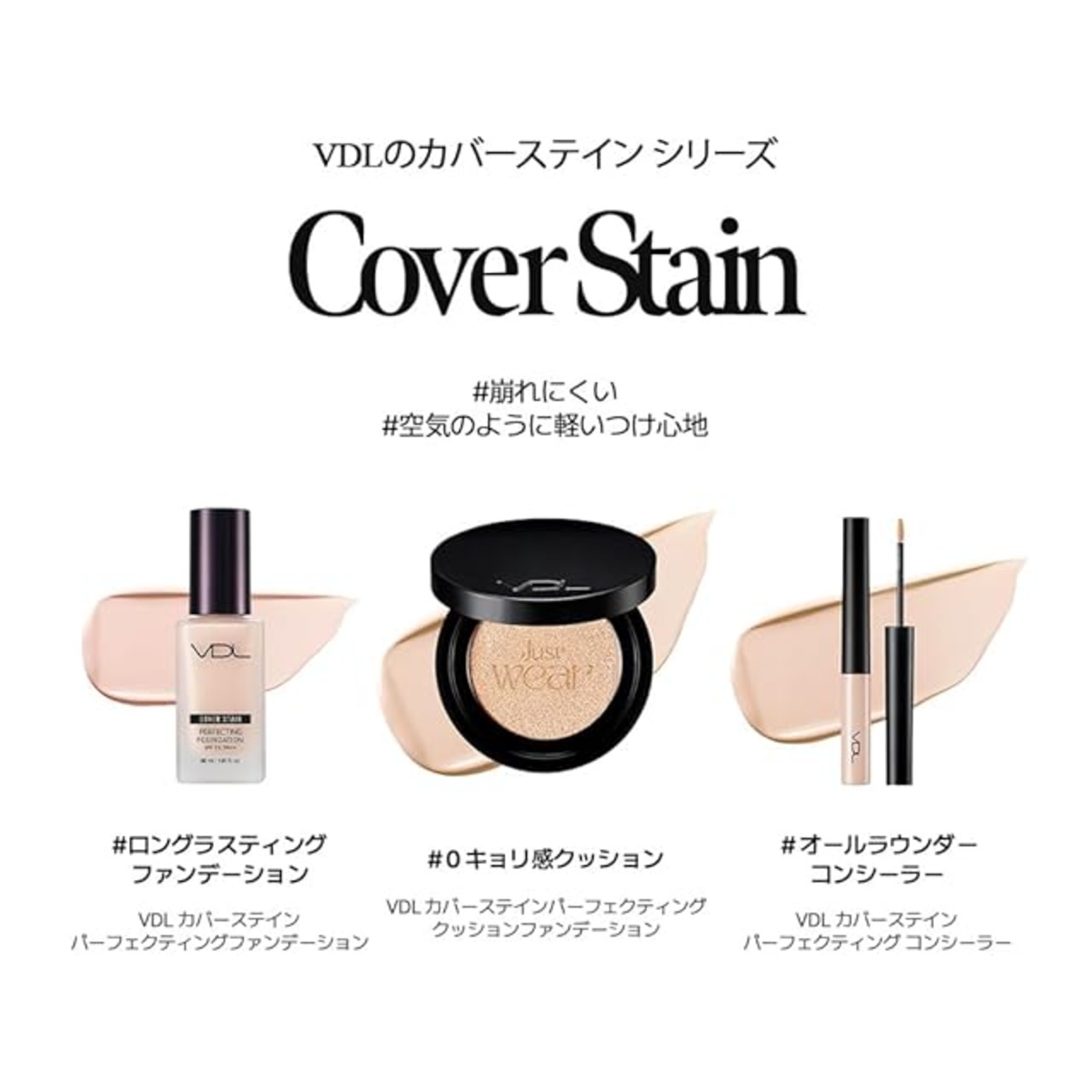 VDLで人気のファンデーション*¹シリーズからクッションファンデーションが登場!!24時間カバー** 近距離でも美しく、0キョリ級クッション ロングラスティング効果で肌の凹凸を自然に密着。崩れにくいフィルター要らずのなめえらかな仕上がりで、近距離でも美しく。 *¹VDL カバーステイン パーフェクティング ファンデーション *²メイクアップカバー持続データ(小じわ、キメ、毛穴)韓国外部機関にて取得済み。効果には個人差があります。